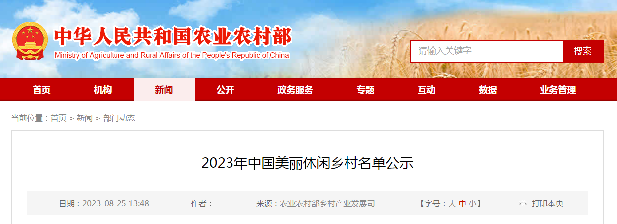 根據(jù)《農(nóng)業(yè)農(nóng)村部辦公廳關(guān)于開(kāi)展2023年中國(guó)美麗休閑鄉(xiāng)村推介活動(dòng)的通知》(農(nóng)辦產(chǎn)〔2023〕3號(hào))要求,今年我部繼續(xù)開(kāi)展了中國(guó)美麗休閑鄉(xiāng)村推介工作。經(jīng)地方推薦和......