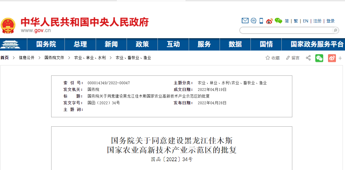 國務(wù)院關(guān)于同意建設(shè)吉林長春國家農(nóng)業(yè)高新技術(shù)產(chǎn)業(yè)示范區(qū)的批復(fù)國函〔2022〕33號吉林省人民政府:你省關(guān)于將吉林公主嶺國家農(nóng)業(yè)科技園區(qū)升級為國家農(nóng)業(yè)高新技術(shù)產(chǎn)業(yè)示......