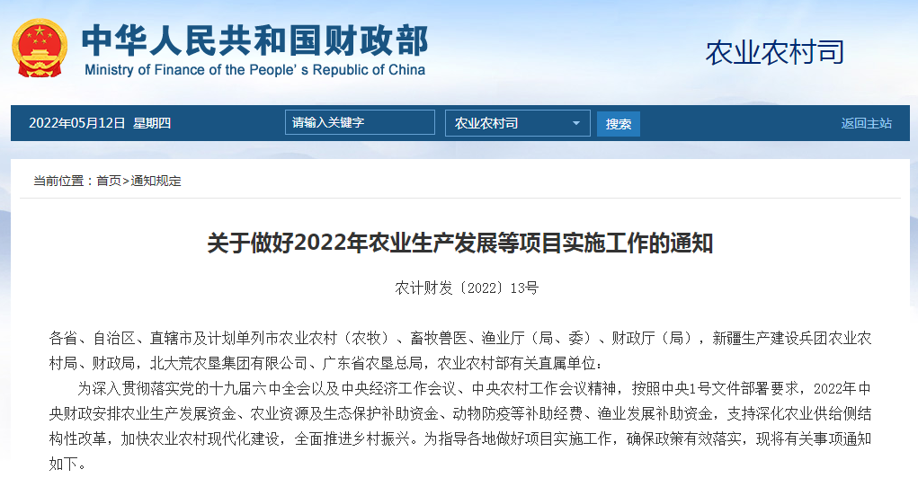 各省、自治區(qū)、直轄市農(nóng)業(yè)農(nóng)村(農(nóng)牧)廳(局、委)、財(cái)政廳(局),新疆生產(chǎn)建設(shè)兵團(tuán)農(nóng)業(yè)農(nóng)村局、財(cái)政局,北大荒農(nóng)墾集團(tuán)有限公司、廣東省農(nóng)墾總局: 為貫徹落實(shí)......